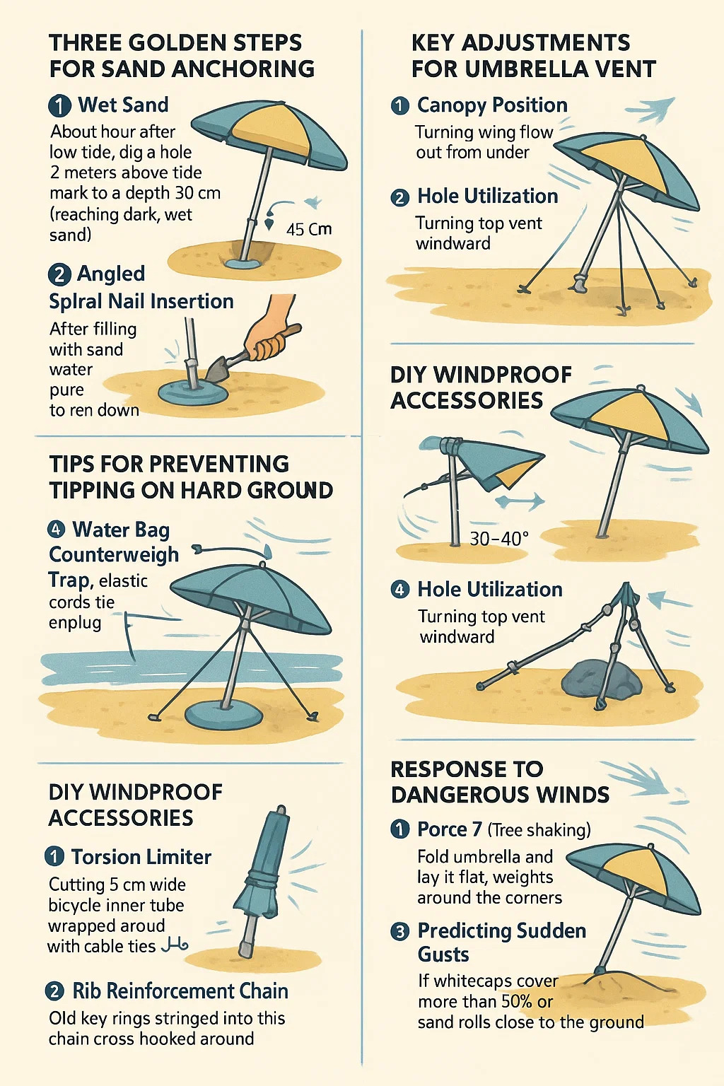 Sau đây là những lời khuyên cài đặt thực tế để đảm bảo ô bãi biển ổn định và chống gió: